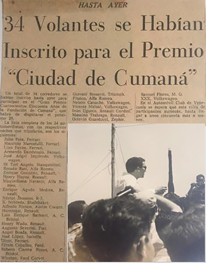 En la reseña periodística podemos observar algunos pilotos importantes de la época disputando la Copa “Gobernador del Estado Aragua” en sus respectivas categorías.